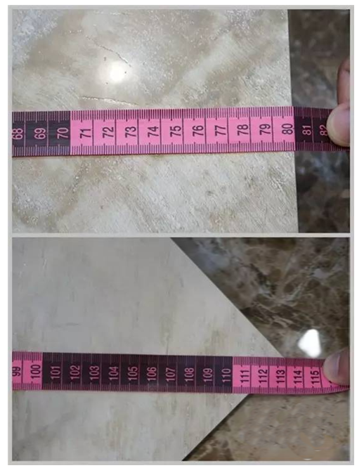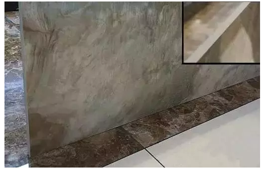 瓷磚無論豎直或平鋪于地面,依然無縫貼合地面。用手撫摸側(cè)邊未感到凹凸不平,可見利卡石材柔光系列平整度較好。